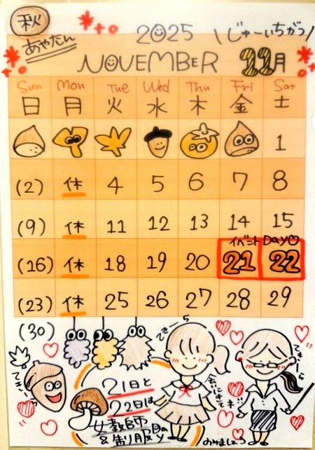 日曜日・月曜日は定休日となります
